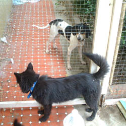 かっこつけてます。黒い子犬は数匹いるのでどれがどれだか…。みんないいかんじに育って、小柄でいい子たちですよ。マンション暮らしのおうちにちょうどいい大きさです。