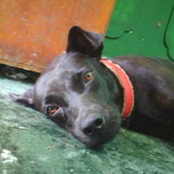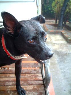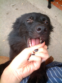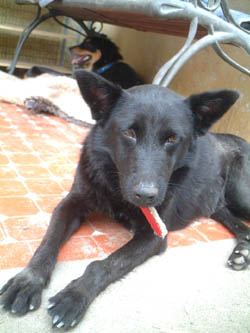 事務所生活に慣れたものの、態度がでかくてほかの犬を威嚇したりしやがります(自分より弱いやつ限定。たまに目測を誤って返り討ちに遭うが自業自得)。困ったものです…。でも自分より明らかに強い犬(トガとか)には絶対手を出しません。人間には従順なので、おとなしくて中途半端な毛の長さの黒犬をお探しのやさしいオーナーさん募集中です!