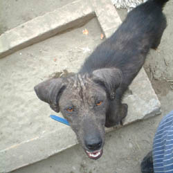 アシュラ男爵模様のロックな容貌に反して、子供なのにいろいろ気を遣うかわいい子です。ほんの子犬のころは飼い犬であったらしく、シャンプーをするのに家に入れるとすごく喜んで、家から出たがらなくなります。かといってハイパーではありません。このビジュアルからして、ヘビメタ好きのご家庭に最適かと。番犬にもなります。ほしい方がいらしたら、我が家でしつけ入れてから差し上げますのでお気軽にご連絡ください!