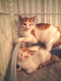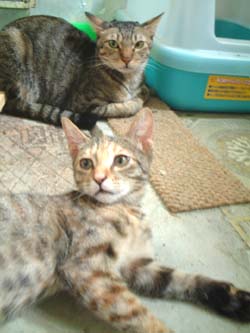 きょうだいなので色や体型が似ていますが、男の子ちゃんのほうが顔つきがたくましいかんじなのがおわかりいただけますでしょうか。女の子ちゃんのほうが少々おっとり。