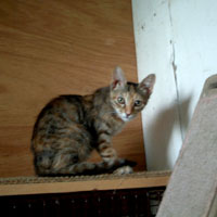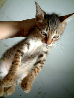 さて今日、夏風邪を押してAT事務所へ行ってきました。新入り子猫が4匹増えていましたので、ご紹介します! なにしろモノが子猫ですので写真の焦点が合いづらく、苦肉の策で吊るして撮影したのでちょっと表情がぼんやりしていますが…