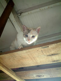 天井裏の女王です。男か女かも未確認ですが。しらゆきさんは今日も天井裏から「ごはんこっちもねー」とアピールだけは人一倍でした。