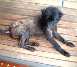 アーサーの皮膚病は、表面を治しても仕方がないのだそうです。免疫系に問題があるので、体質を変えないとだめみたい。でもニコニコ元気です。もし彼が今も野良犬として街をさまよっていたら、彼の姿のせいで理由もなくいじめられただろうなあと容易に想像ができますから、アーサーはここにいてよかったなと思いました。気長に治しましょう!