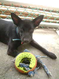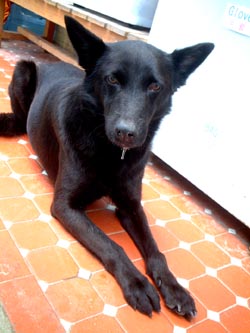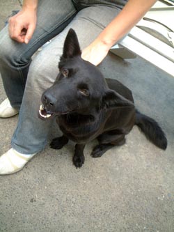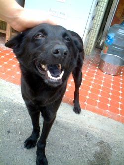 黒黒(へいへい)は、2日前の夜にウチの家の前にいたのを保護した子です。びっこをひいていたのと、身なりがよかったので迷子かもしれないと思ったために捨て置けず、庭で一晩過ごさせ、翌日Sean に頼んで獣医さんに連れて行ってもらいました。避妊をしてまた外に放すつもりでしたが、性格のいい子なのでと、好意でAT に置いてもらえることになりました。