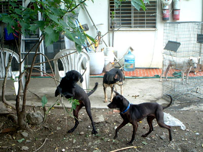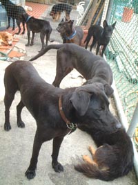 黒犬たちです。なんとなく固まっていたので撮りました。犬の名前はけっこう覚えているつもりですが、黒い子達はもうどれがどれだか。皮膚病のある子は毛が生えると雰囲気が変わるし(言い訳)