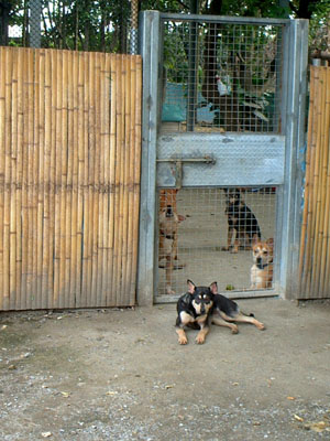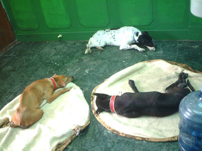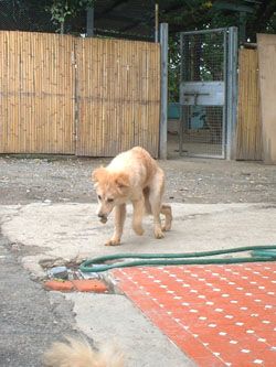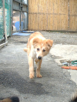 ドアの前にいるのはリナちゃん。ものすごい臆病で、ほかの犬ともめったに行動を共にしません。最近やっとそばを通り過ぎても逃げない、になった程度。超レギュラーのスタッフさんが、手渡しでリナに食べ物をあげたときは奇跡だとどよめいたものです。