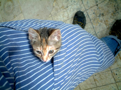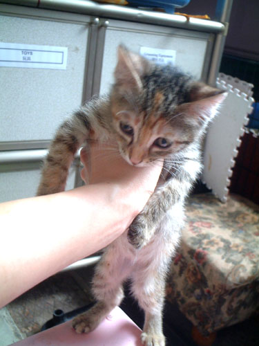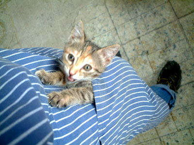 新入りです。さび色がかわいいです。とても人懐こくて、フカフカでむにゃむにゃです。ここでワタクシにネコ萌えの神様が光臨しました!