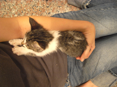 人間大好きで人見知りをまったくせず、バスに乗ってもニャーニャー元気で環境の変化にも動じず、ひとりぼっちでも勝手に延々遊んでいて、ひざに乗せれば甘えて眠る… そんなカワイコチャンが人生で最も輝く子ネコ時代は限られています!興味のある方はお早めに!それでなくても子ネコはとっととさばけちゃいますんで!