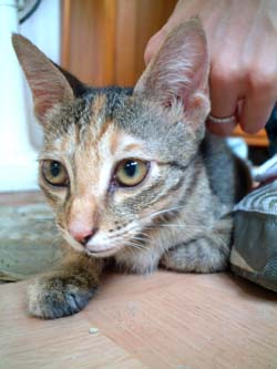 そうそう、新入りの子猫が3匹います。茶虎が美しいちょっとシャイな若い子猫と、白地に黄のきょうだい子猫が3匹です。お兄ちゃん子猫が特に愛らしい顔つきで、強力推薦です!