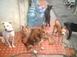 ドアの前にいるのはリナちゃん。ものすごい臆病で、ほかの犬ともめったに行動を共にしません。最近やっとそばを通り過ぎても逃げない、になった程度。超レギュラーのスタッフさんが、手渡しでリナに食べ物をあげたときは奇跡だとどよめいたものです。